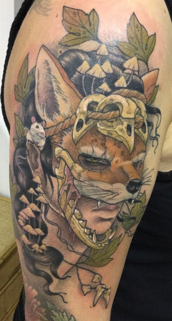 Fox lady Type: Tattoos Here’s a style I really love doing. Fun details, muted colors and textures! All goodies in one. Related